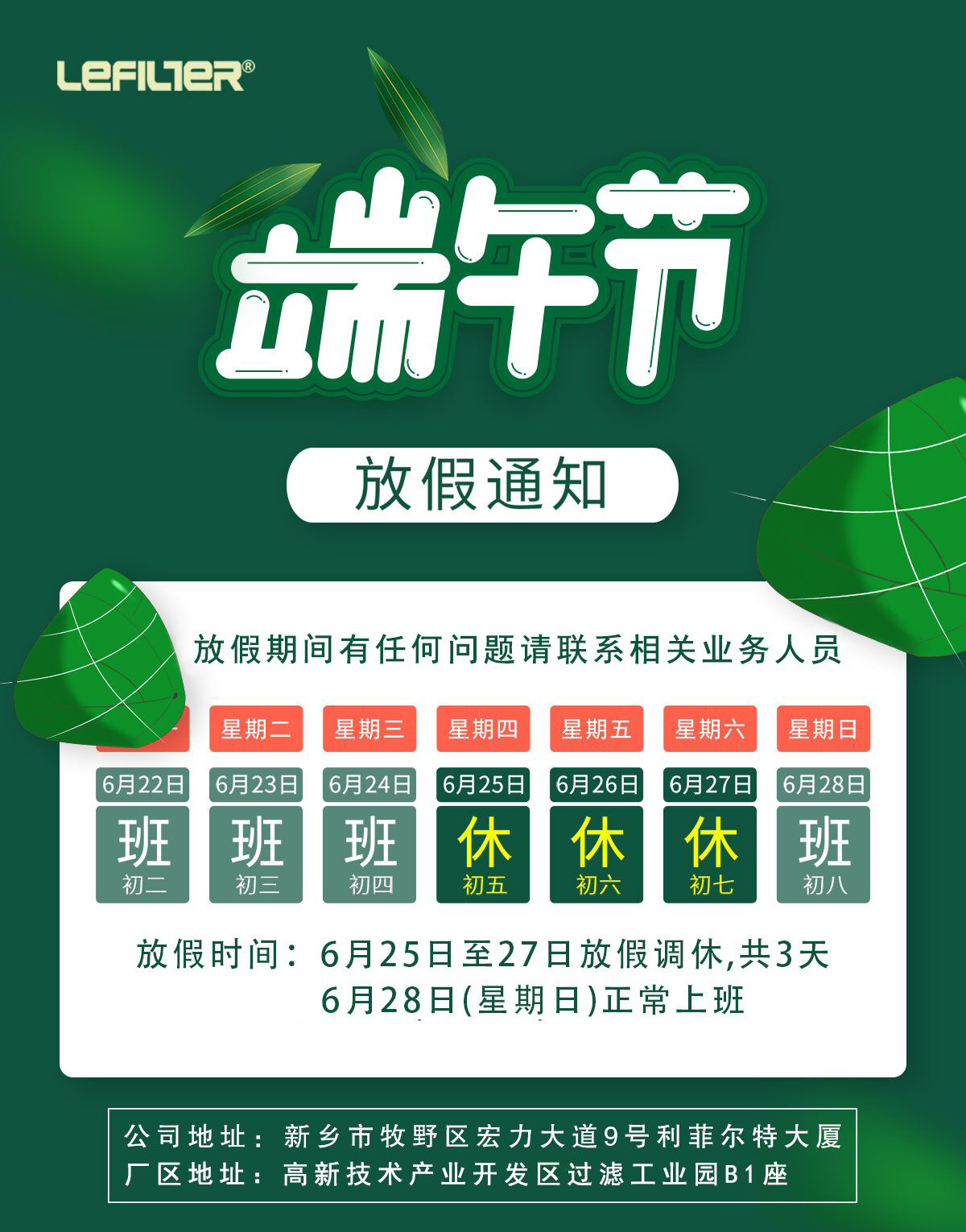 端午節(jié)利菲爾特放假通知