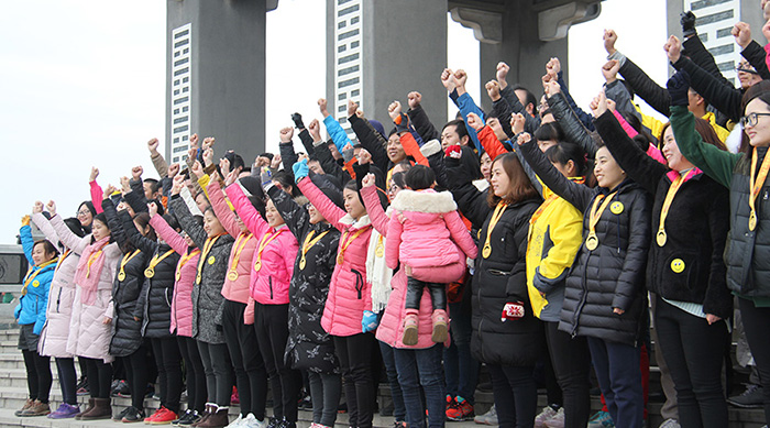 隨后,進入了團隊風(fēng)采展示,6個小隊逐一進行,冬天的嚴寒仿佛被大家整齊響亮的口號所融化,聲音響徹整個山頂!