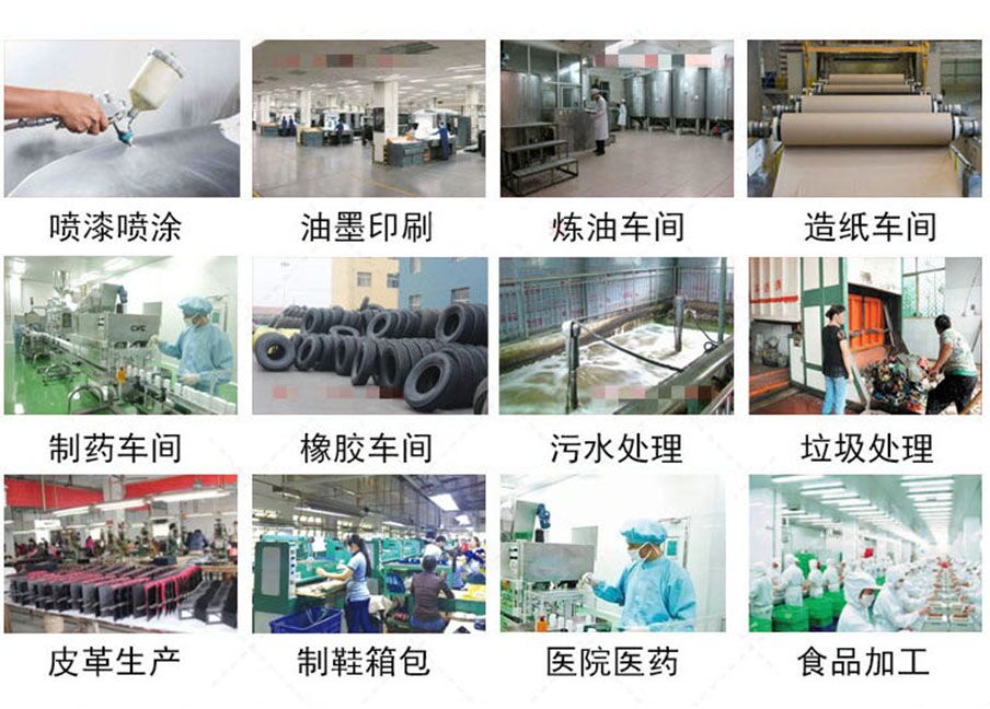 煉油廠、橡膠廠、化工廠、制藥廠、污水處理廠、垃圾轉(zhuǎn)運站等惡臭氣體、工業(yè)廢氣的凈化處理。