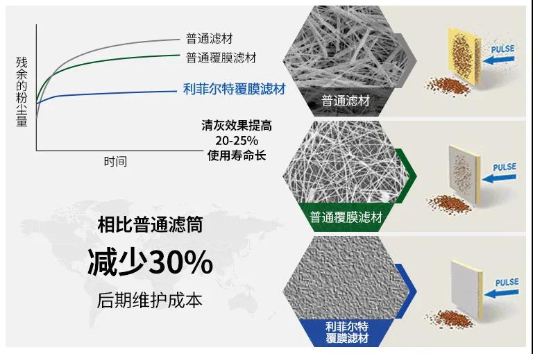 覆膜聚酯無紡布:采用進(jìn)口PTFE覆膜聚酯濾料,該材料制作濾筒使用壽命長,過濾精度高,反吹清灰更容易,一般工況條件下可達(dá)1-2年。適用范圍:焊接除塵、噴丸制造、制藥、水泥、煙草、紡織工業(yè)等行業(yè)的過濾。